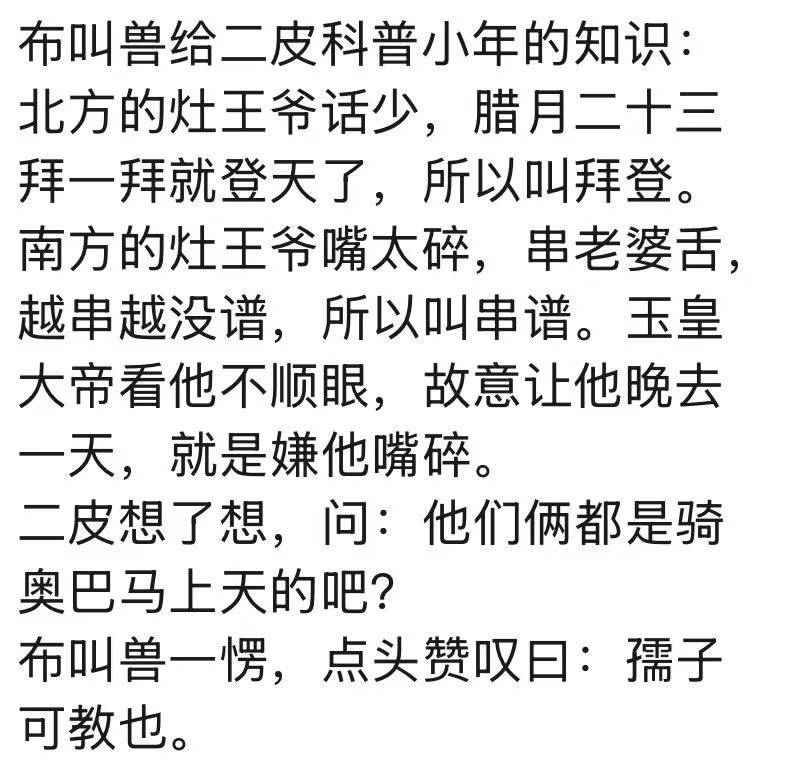 怪不得我们家风俗昨天腊月二十三就对灶王爷“拜登”了。小时候我爸大门对联他自己动手不敢让我们写,但分配让我们写猪舍、鸡舍、厕所、灶台之类,我写过灶台的对子:上天言好事,下界保平安。