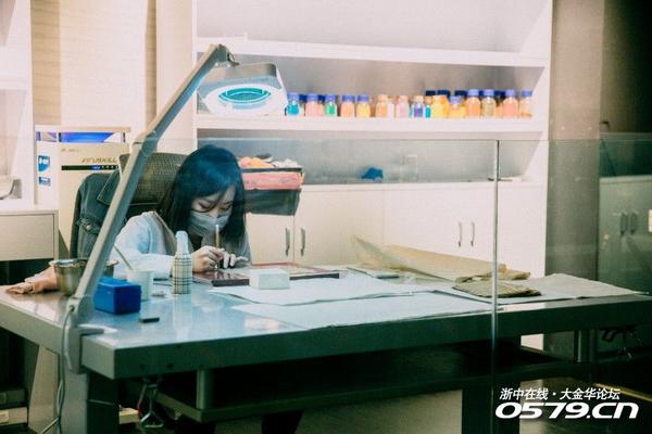 正在修复文物的小姐姐。