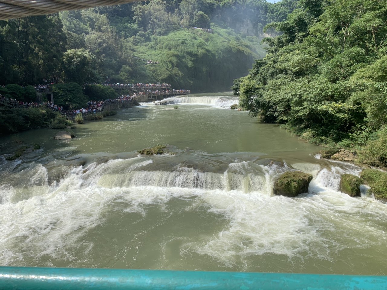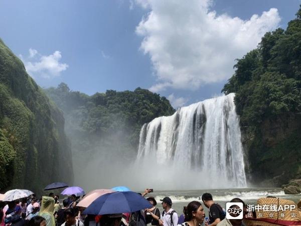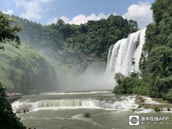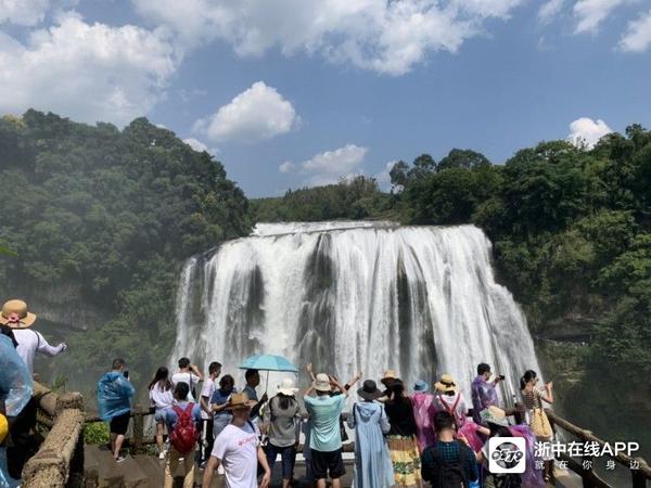 一直都想來黃果樹瀑布,早上由曲靖出發,走滬昆高速,這條路只有呵呵來形容,一路上不停地限速80公里,測速照相不停,2點才到景點,我們不知道門票要先在網上訂好,今天的門票已經搶不到,給黃牛黨150員小費兒子又不肯付,他說不能助長他們,后來不死心去窗口問,拿出回鄉證原來可以即時有票,不過學生證也是全票,每張票90元,景區車50元,刷臉进去坐20分鐘到達大瀑布門口,50元來回票搭扶手電梯下去,扶手電梯單程30元,去到瀑布底開始欣賞瀑布,一路向前走,穿過水帘洞,上去這條路又窄又濕,老人和小孩要很小心,沿途有很多觀景臺可以拍照,如果有帶雨傘,可以不用買雨衣,走到盡頭跨過吊橋,行程結束