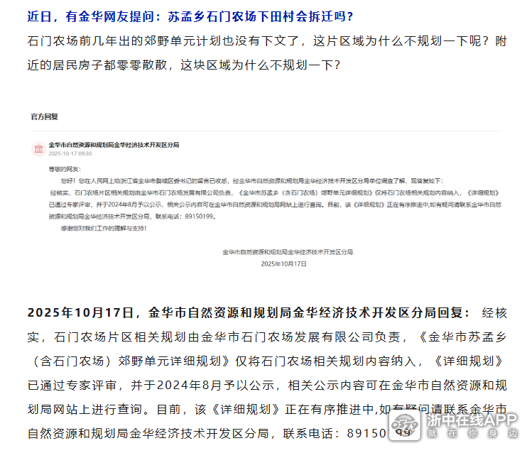金华这个村还拆不拆迁了?官方回复来了→