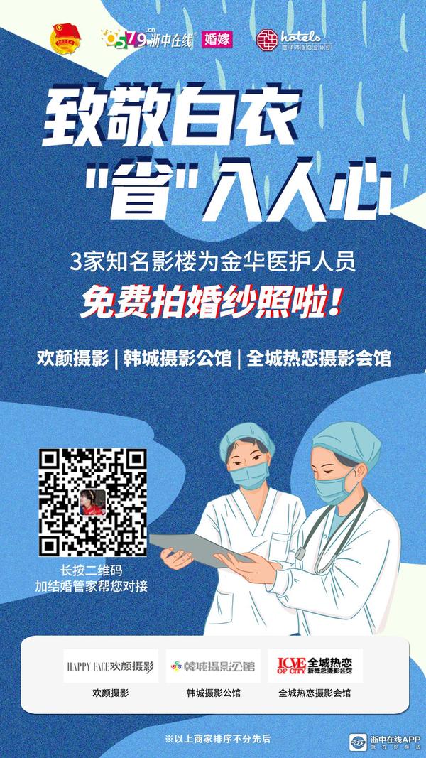 致敬白衣,“省”入人心——3家知名影楼为金华一线医护人员免费拍婚纱照啦!