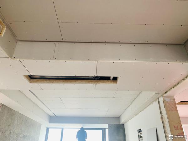 做吊顶时发现原来的空调管道铺设的离墙有十几公分,导致吊顶挂边离墙由计划的两三公分改为17公分,突发奇想,把餐厅的磁吸轨道灯取消,挂边中心位置增加了一条线性灯,一直延伸至客厅,实现了线性灯的梦想,希望最终出来的效果要不错哦