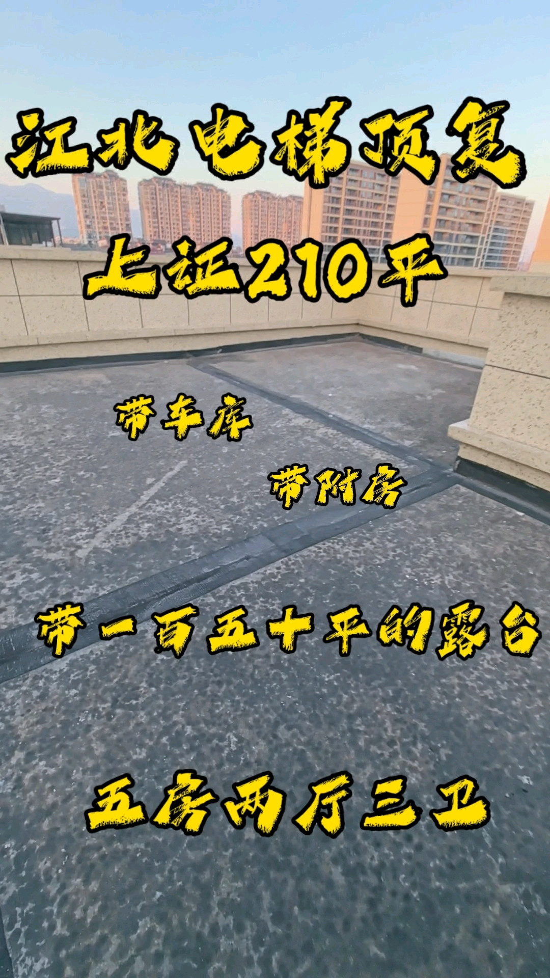 江北天排顶复,还是洋房5+6,上证210平,五房两厅三卫,还带车库,带附房,三百不到,还带一百多平的露台