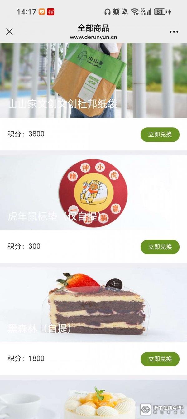 山山家公众号,每日签到,攒够1800兑换黑森林。