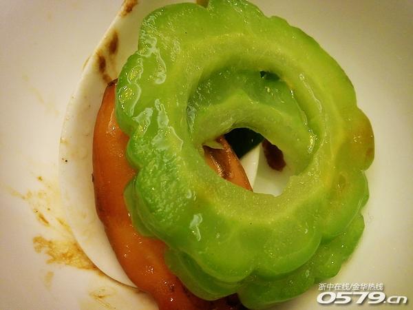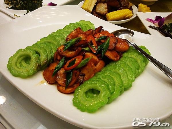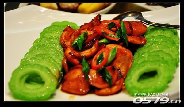 • 活白条鱼只是简单的清蒸,味道倒也地道。鱼其实只要新鲜,怎么做,我都爱吃。凉瓜鲜鱿也是我喜欢吃的菜,别问为什么,因为有鱿鱼嘛,哈哈。