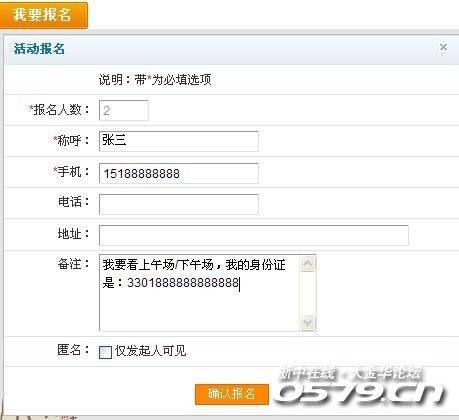 2、请在本贴首楼上方点击“我要报名”填写你的真实报名资料(真实姓名+手机+身份证),以便领票时核对身份。