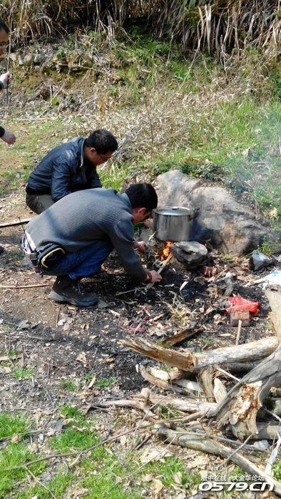 排长在生火做饭。
