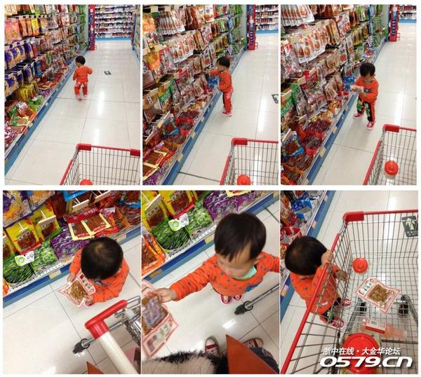 早上和老妈带太极去逛了趟超市,中午在外解决。小家伙都会自己挑零食和帮着拿东西了。