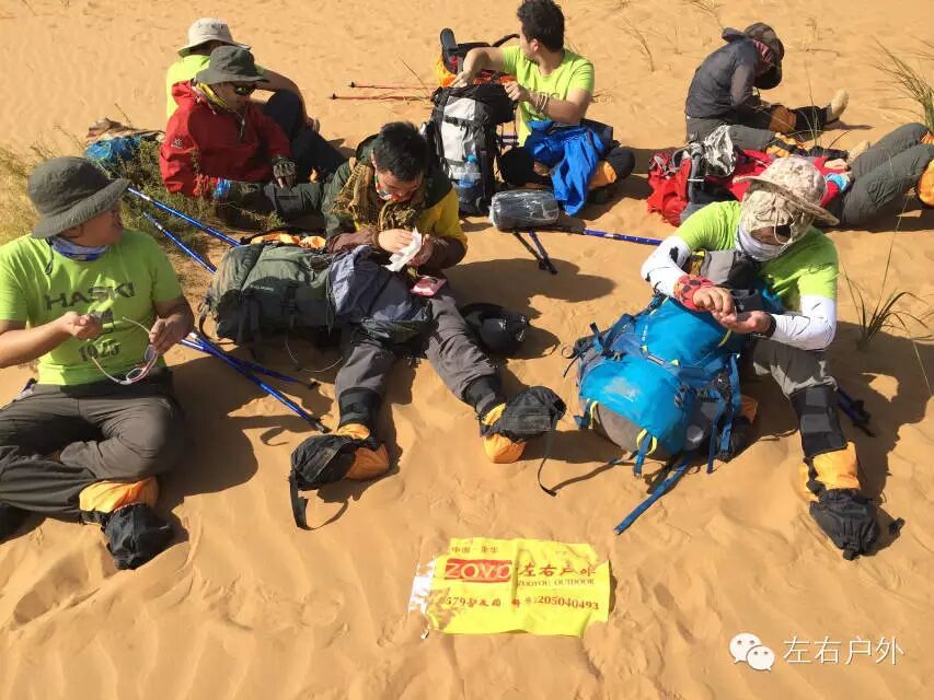 难度:沙漠穿越历时3天2晚,徒步穿越总里程70公里,全程无需负重,所有物资均由专业沙漠越野车运送。并随时能呼叫救援车。