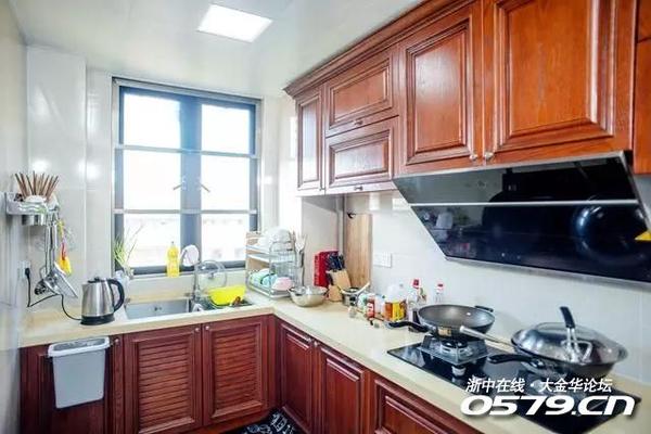 ▲L型的橱柜简单明了,厨房还是很大的,双开门冰箱也妥妥的放下啦。