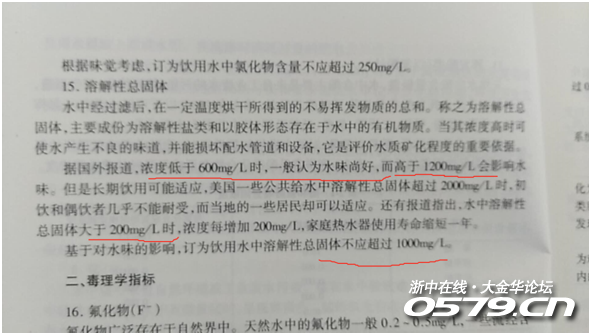 国家标准限值是≤1000mg/L,《生活饮用水卫生标准》规定,总硬度(以CaCO3计)限值为450mg/L。通常水库水的溶解性总固体较低,一般在40mg/L,江水高一些,地下水大多会更高,而瓶装纯净水为0 mg/L,实际对健康并不适宜。贴文图片兰溪自来水检测为301,我们公司10月25日送浙江省技术监督局检测为193 mg/L,都符合国家标准。因此,超过100 mg/L就不能做饮用水是重大误解。
