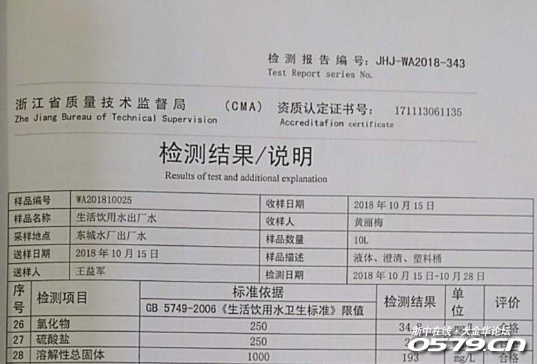 感谢网友“林小林林”对兰溪饮用水水质的关注,您在帖子中认为兰溪自来水检测值是301,超过100就不能做饮用水,这是对国家饮用水水质标准存在重大的误解。