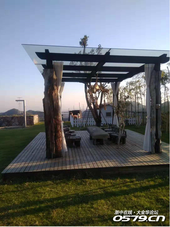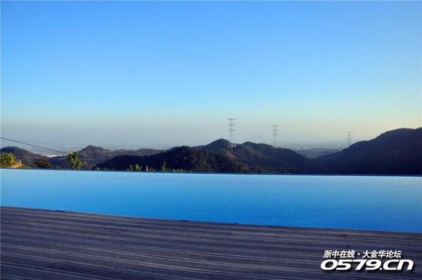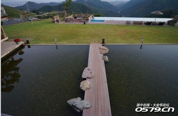 好像也没有什么特别嘛,伸个懒腰下车,团队的先遣军已经在一个高台上向我挥手了。拾阶而上,展现在眼前的是一个别样的世界,宽阔的草坪,别致的楼房,温馨的小木屋,浅浅的水池金鱼游弋,水底的鹅卵石清晰可见。特别是那临崖而建一汪湛蓝的游泳池,如镶嵌在群山怀抱绿地上的一颗蓝宝石,瞬间使人觉得高端大气上档次。