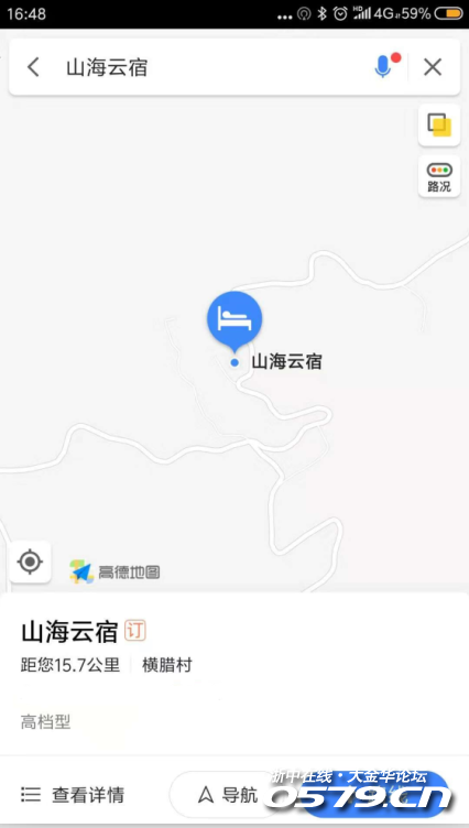 点开手机导航,搜索“山海云宿”,不错,居然可以直接搜到目的地,这样就非常方便了