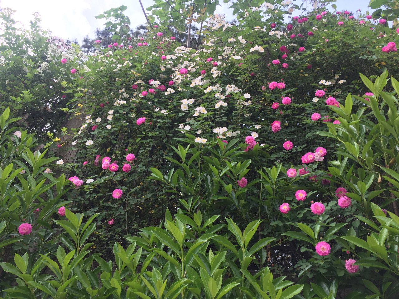 各位看官是不是感觉蔷薇很常见到,不稀奇了呢?确实,一丛两丛的蔷薇确实不稀奇!不过师大的蔷薇可不是一丛两丛那么简单。