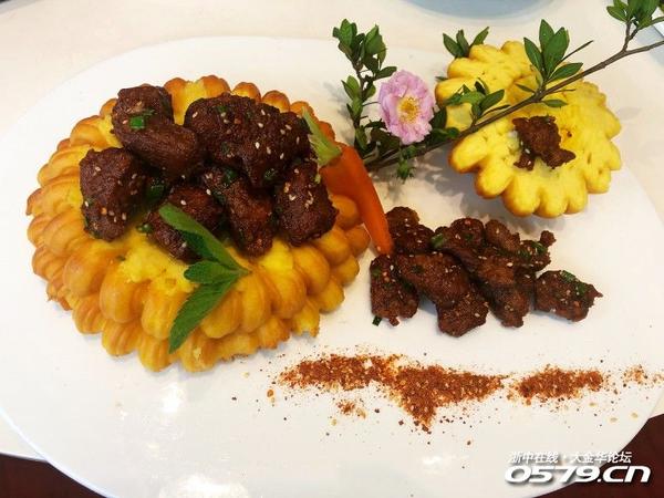 花膜焗牛肉,爱吃牛肉的我当然不放过这道菜了,下面的底座就好像鸡蛋蛋糕,忍不住掰了一块尝尝,哈哈,是不是很贪吃
