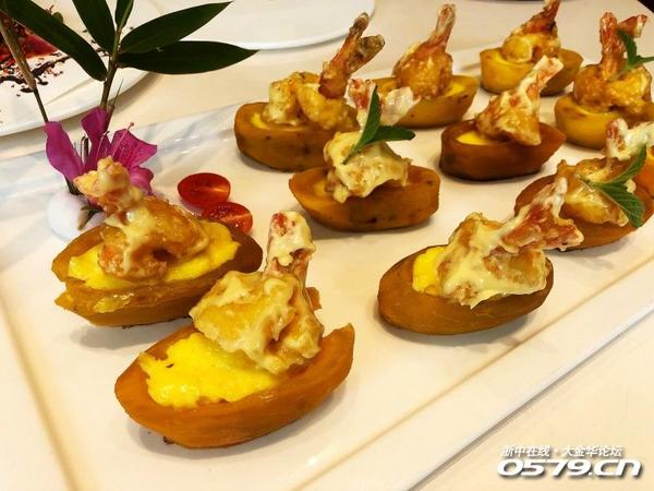 芝士九节虾,烤地瓜融入芝士的香味,配上整个虾肉,曾经我在日本吃过一道香芒芝士九节虾,味道绝对可以媲美