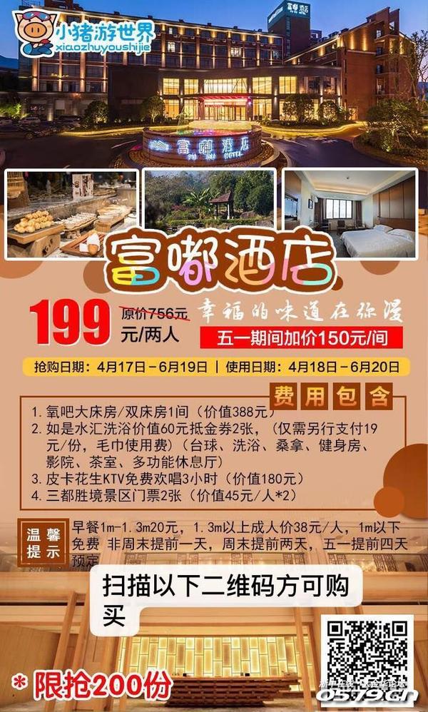 两天一夜的旅行就这么在短暂的时光中结束了,但却是给每一位体验员留下了骨子里深刻的记忆和那磅上惨不忍睹的数字,俗话说:世间安得双全法,不负美食美景不负已。既然那么多的人与事,是那么多的无可奈何,那么多的无法控制,辜负与被辜负,都是人生的常态,人生实苦,至少愿你能不负美食美景,对自己好点,能够在新的环境里重新认识自我,开阔视野与见识,增进交流与友谊,成为那个最好的自己。对于我们这群每天在同一个城市,忙忙碌碌的工作者而言无非是一个很好的放松渠道,再也不用叫嚣着空有一颗想浪的心,奈何是远方。现在周边城市就已能满足你。而且性价比可以低到让你狂嗨狂叫,只要199,而且是两人行。住宿+洗浴+KTV+风景区。重点的是美食就在酒店中,可以随时品尝。还等什么呢,扫下方二维码走起吧。