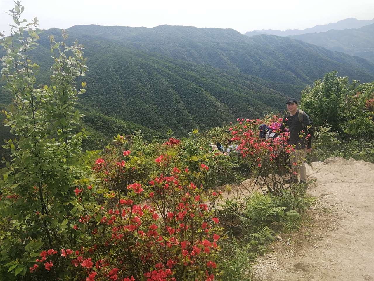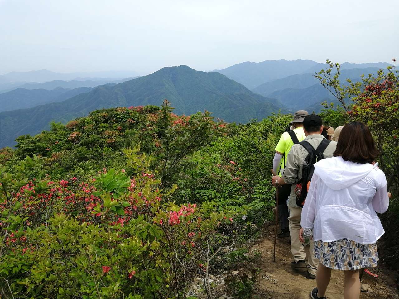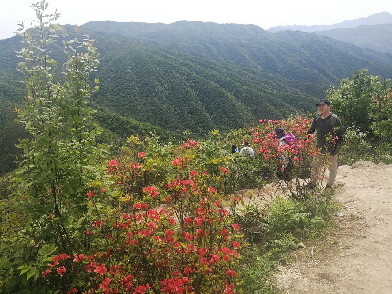 今年杜鹃花提前开,虽然比往年提前2.3天,花已经没去年那么鲜嫩怒放,但依然抹着着红艳。这次活动承蒙老天眷顾,出发前担心的太晒,太闷太热,荡然无存。凉风习习,很惬意,我们弱驴组节奏也慢慢来,一路拍照一路白皮,自在悠闲。