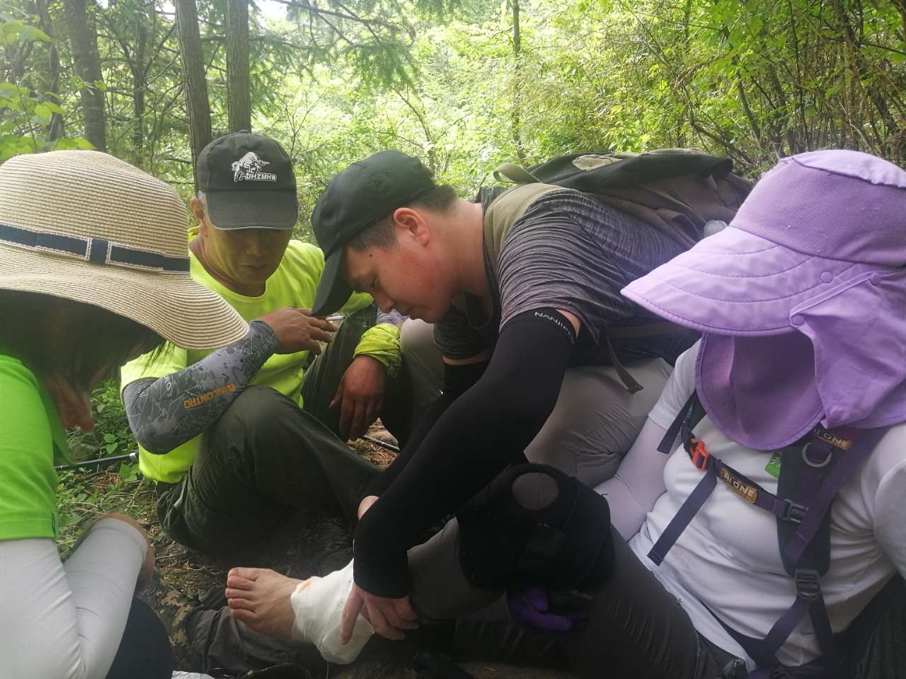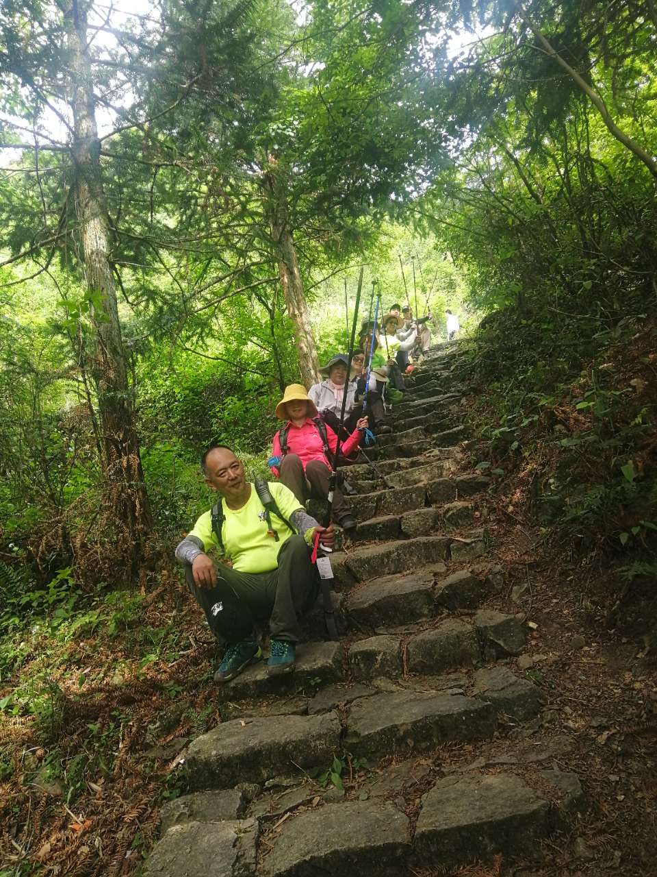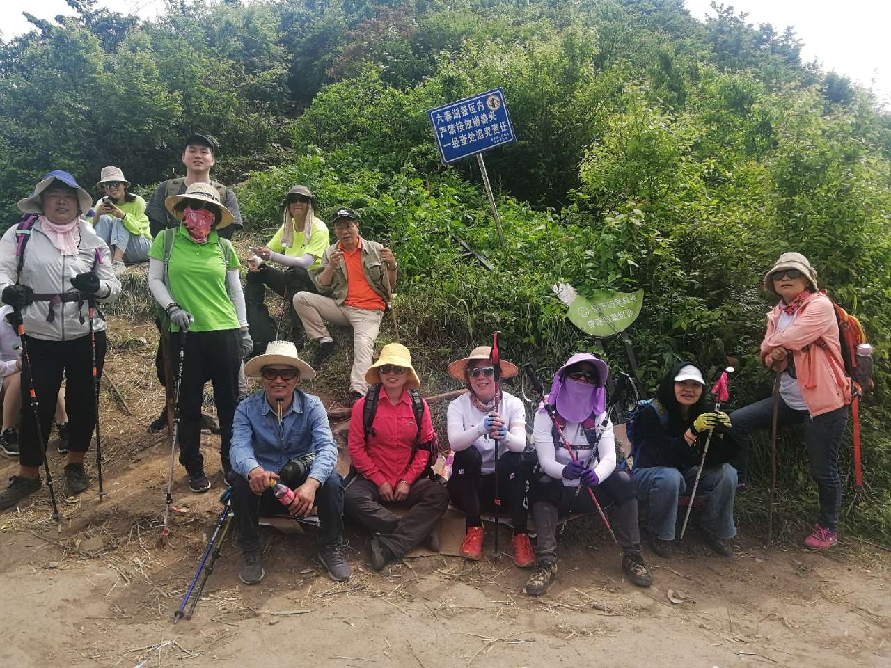 还是有点小插曲,有美女脚崴伤,大家各显神通,包扎的包扎,找车子的找车,把美女安全送到集合地点。还有美女虽然体力不支,但通过努力还是坚持完成了12公里,海拔1415的登山。