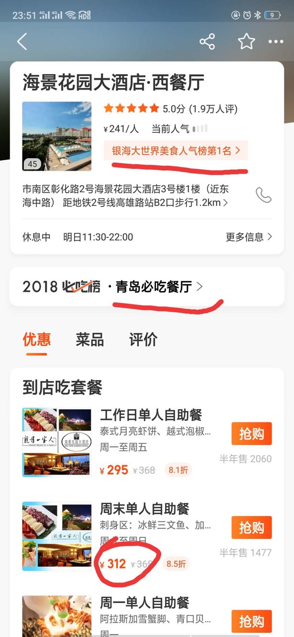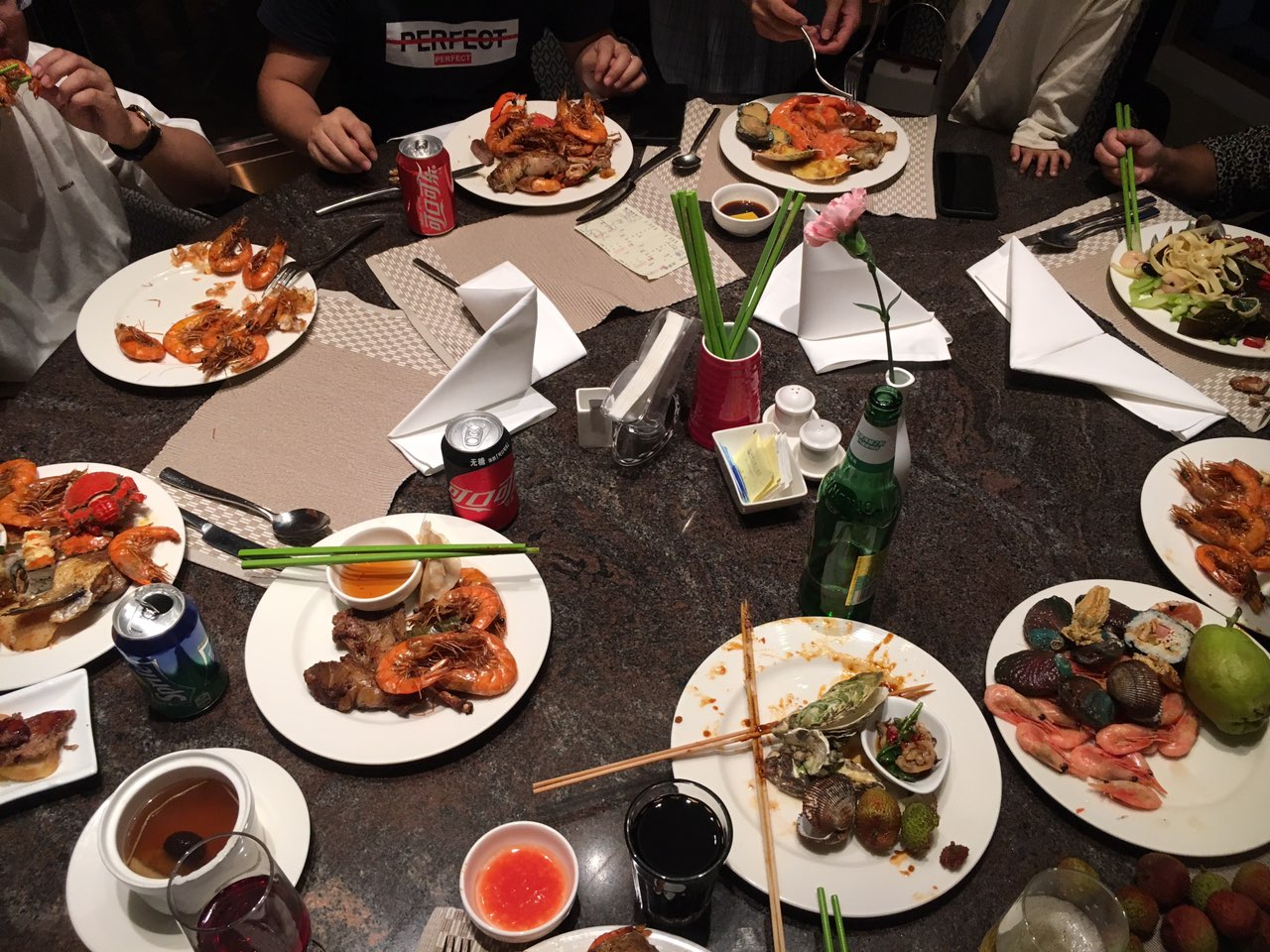 晚上的晚饭才是重点,在青岛排名前3的海景酒店吃自助餐,三文鱼很新鲜,海鲜的烧法很多样式很多!尤其是服务很好,朋友要求送一套特有的12生肖玩具,他们实在找不到了,送了其他玩具!也有38元一只的青岛大虾吃完走回去酒店,听听海风,大家聊聊天!明天就回去,虽然时间紧凑但是该玩的都玩了,最主要的爸妈开心!