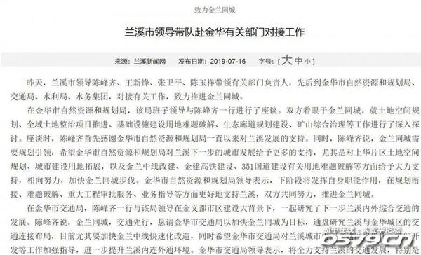 昨天,兰溪市领导陈峰齐、王新锋、张卫平、陈玉祥带领有关部门负责人,先后到金华市自然资源和规划局、交通局、水利局、水务集团,对接有关工作,致力推进金兰同城。