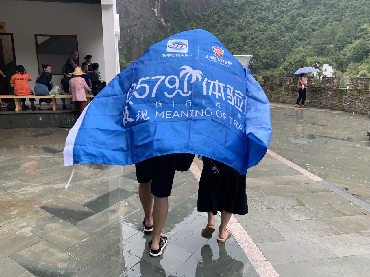 时间也过的差不多,大家换好衣服,准备打道回府。可怜的我和小途木有雨伞只能这样,战袍亮相,披身上,走出六亲不认的步伐。