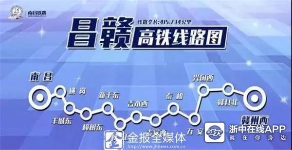 目前,金华每天有多趟普速列车至井冈山、赣州等地,出行虽然方便,但行程耗时普遍较长。如到赣州,普速列车最快也要8个小时。金华至南昌G字头最快1小时42分,基本上在2小时以内。昌赣高铁全线近420公里,设计时速350公里,意味着开通后金华到赣州参加红色旅游只需3个多小时行程。