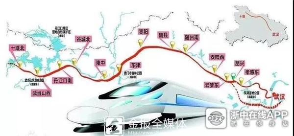 汉十高铁还是“八纵八横”高铁网之一福银(福州至银川)通道的一部分,未来高铁还将从十堰向北延伸至西安和银川。借助这条高铁大通道,金华人可一路向西北游得更远。