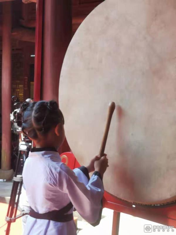 启蒙老师先敲击大鼓三声,以示学童从今启蒙,然后学生们纷纷击鼓并大声说出自己的远大志向。