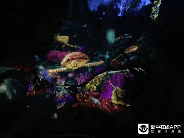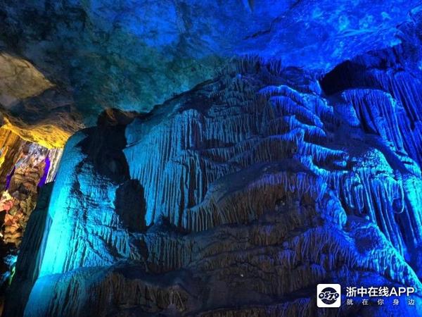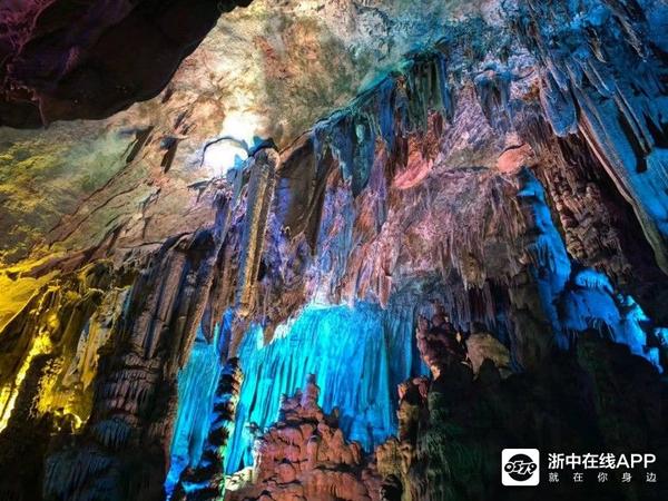 虽然在光线的映照下,溶洞内五彩斑斓