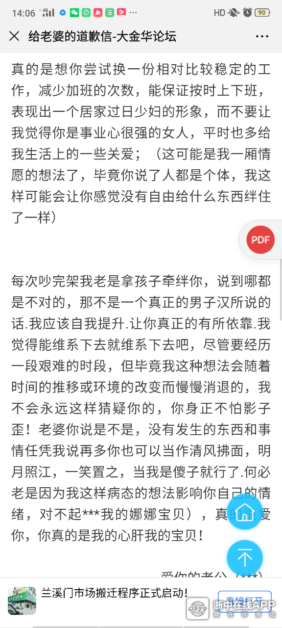 6.http://m.0579.cn/read.php?tid=3080898&from=timeline你说这篇道歉信是我逼你离婚我写的??。。。。您是臆想症又发作了吗,我们9.20离的婚,这是6月份发的啊,你是时间次序都搞不清了吗,文笔风格什么的,大家伙儿瞧瞧,是不是跟本篇同一风格。
