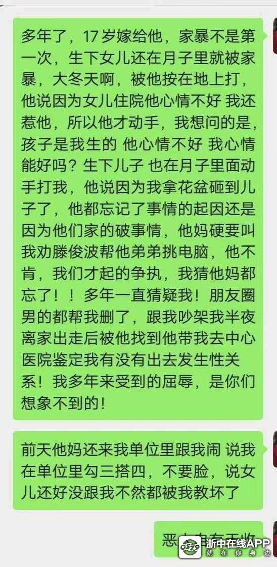 15.还说有个同村的,是因为男的一家太惯着我了,我才有恃无恐,你去打听清楚,我17岁到他家,18岁生下女儿,女儿一岁我上班到现在女儿八岁,儿子四岁,我早上5点多出门,晚上7.8点回家,不管刮风下雨下雪我都骑着电瓶车往返40公里的路回家,孩子白天跟奶奶,晚上都是我一手带着,不赌博不爱串门,一有空就在家洗洗刷刷带孩子,你去他家附近打听打听再下定论谢谢
