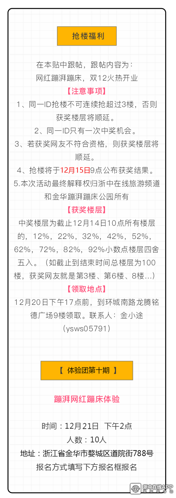 【0579体验团】世界冠军空降金华,全国连锁第四家,超人气,蹦湃蹦床乐园体验~