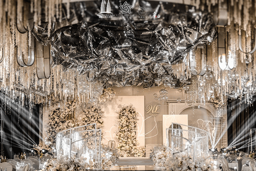 【追光灯】:跟随新人在周围2-3米形成一个明亮的区域,突出新人。