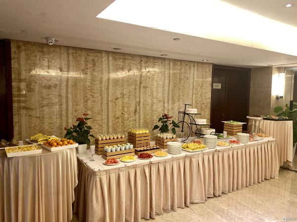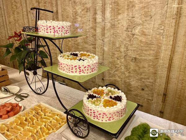 你选择酒店赠送的甜品台,蛋糕、水果、寿司、甜品应有尽有。