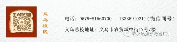 义乌市新火焰咖啡烘焙培训学校,坐落 于美丽的国际小商品市场义乌,农贸城副食品市场中街17号七楼。学校周边就是副食品市场和水果市场。方便采购各种烘焙原料。学校专业培训:西点,蛋糕,面包,韩式裱花,翻糖,奶茶,咖啡,甜品为主的正规的烘焙培训机构。学校课程丰富,师资力量完善,专业老师授课,按课程表实操教学,包学会,不会免费重学。免费介绍就业,免费提供创业指导。想学烘焙来这里,学专业烘焙技术,实现创业梦想。