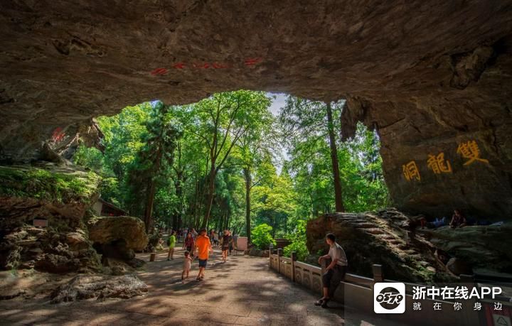 双龙洞位于双龙景区的中心,是整个景区的核心与象征。成为自然风景名胜的历史已有1600多年。洞内常年洞温为17摄氏度左右,冬暖夏凉,炎夏至此,有“上山汗如雨,入洞一身凉”之感。