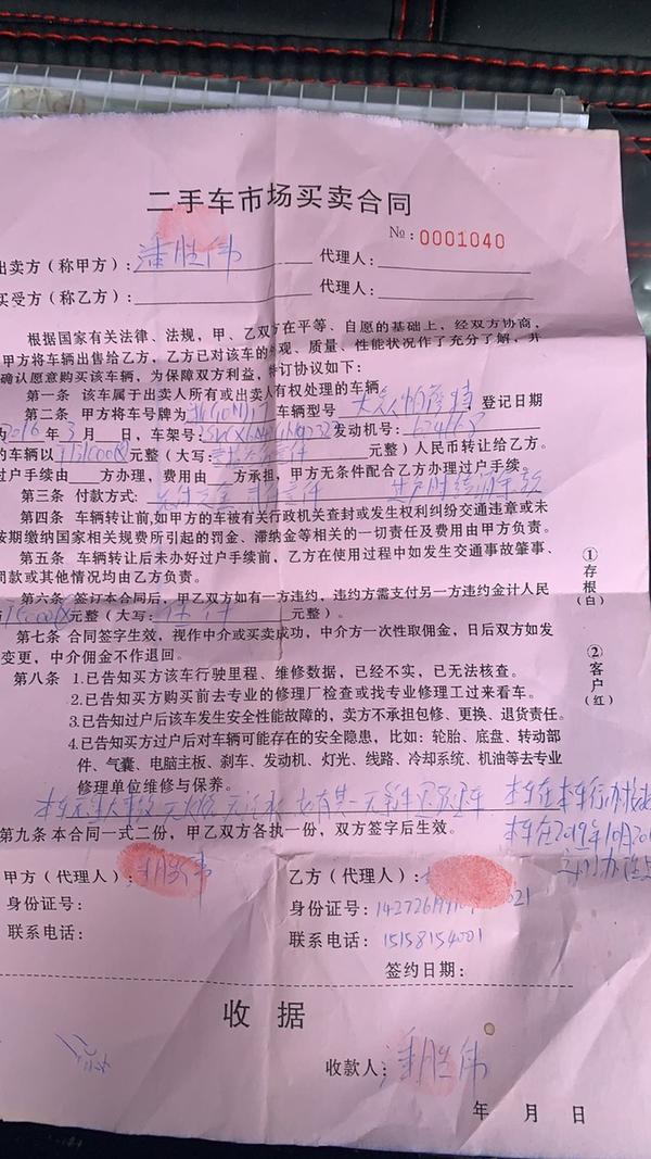 2019年10月18日在金华二手车市场君诺二手车行买了一辆16年上牌的二手帕萨特,车价为13.1W元,公里数为4.2W公里,五个多月后也就是今天我在浙里办app汽车健康档案里查到此车在2018年7月31日的公里数已经为63438公里,瞬间有种被坑的感觉于是我就找到车行老板讨说法,车行老板给了两个方案:赔偿我3000元就此了事;12.8W把我的车回收。我个人认为赔偿我3000元太少,毕竟公里数差了三四万公里,再看他第二个方案,我个人认为他需原价回收并赔偿我1600元的交强险(昨天刚买的交强险)。在此求助论坛大神我改如何维权?大恩必重谢,同时借助论坛也要提醒广大买二手车的朋友务必慎重,他们合同很诡异,我现在的痛点就是无法证明我当时买车的时候公里数为4.2W公里,导致车行老板扯皮。