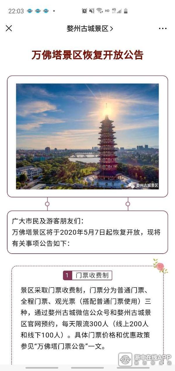 万佛塔景区将于2020年5月7日起恢复开放,现将有关事项公告如下: