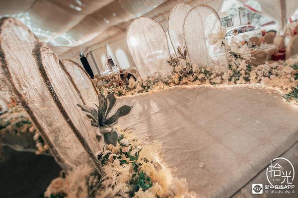 需要在一定的空间,搭建起一座不受外界干扰,并且具备特点的婚礼内棚,再在棚内婚礼上配合使用香槟色,更好的衬托出婚礼的氛围