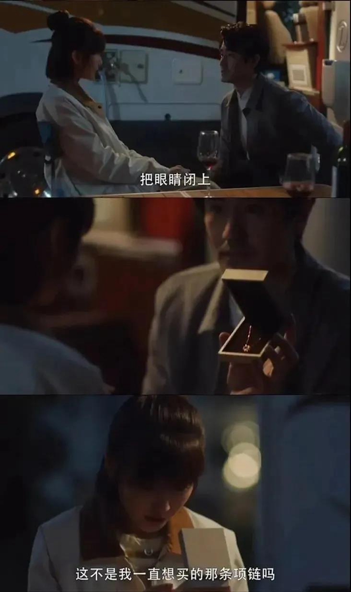 但也有正面的例子,比如最近的《三十而已》,榆木脑袋转正后的“陈养鱼”在送礼物时就聪明了许多,一条老婆心仪已久的项链就送地十分讨喜。