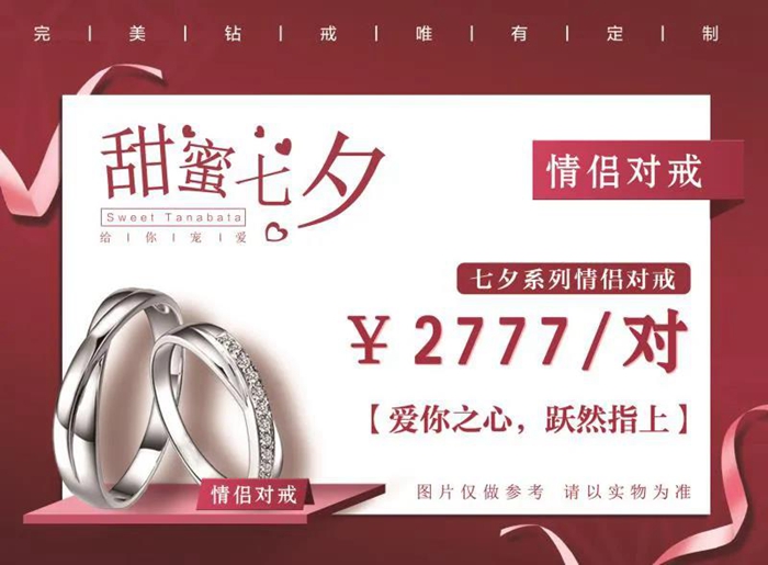 款式可以挑选有节日气氛一点的!不用担心,各大珠宝品牌肯定都会出七夕推荐款哒!如果你的她不是很喜欢惊喜的女孩子,那你可以带她一起去购买!让她自己挑的话,款式会更合适哦。