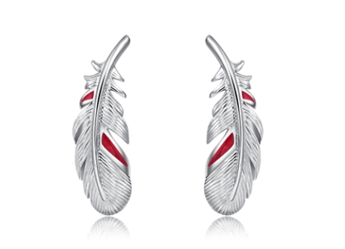 ▲周大福-丰盈坚韧天使铂金(鸽血红珐琅)耳饰