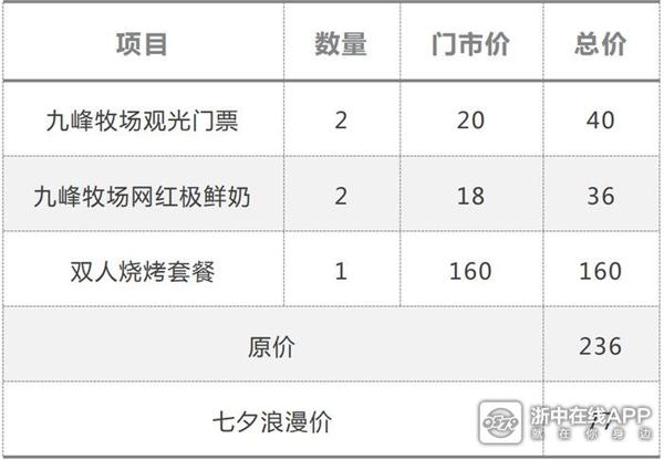 九峰牧场的七夕限定双人套餐也如约而至