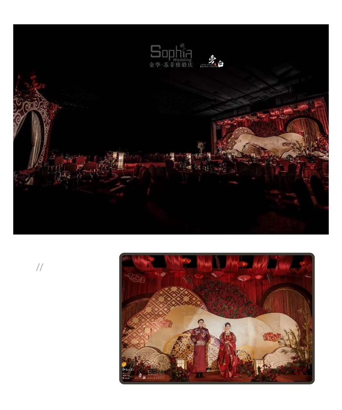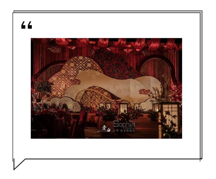 整场婚礼仪式,配上灯光氛围的渲染,音乐的烘托,所有人都沉浸在中式婚礼文化的氛围内,同时再次让我们感受到中国传统文化的礼节。