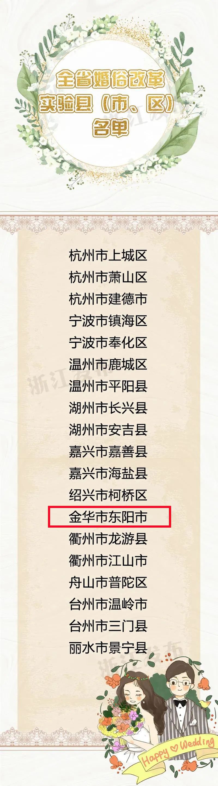 细则中提到了要切实抓好全省19个婚俗改革实验县(市、区)试点工作,其中东阳入选!