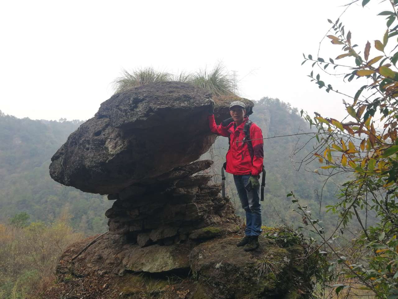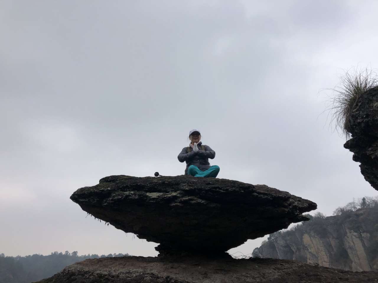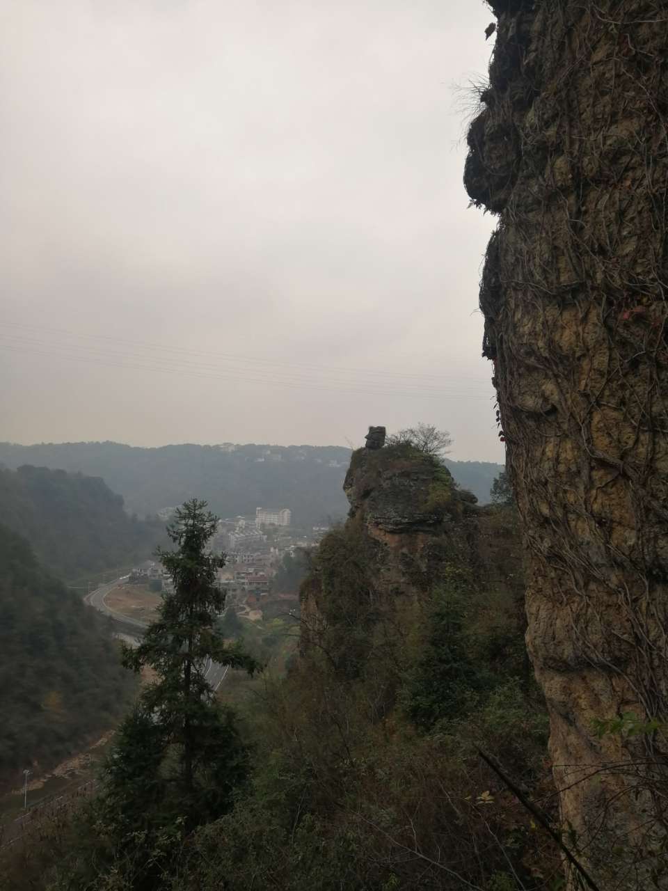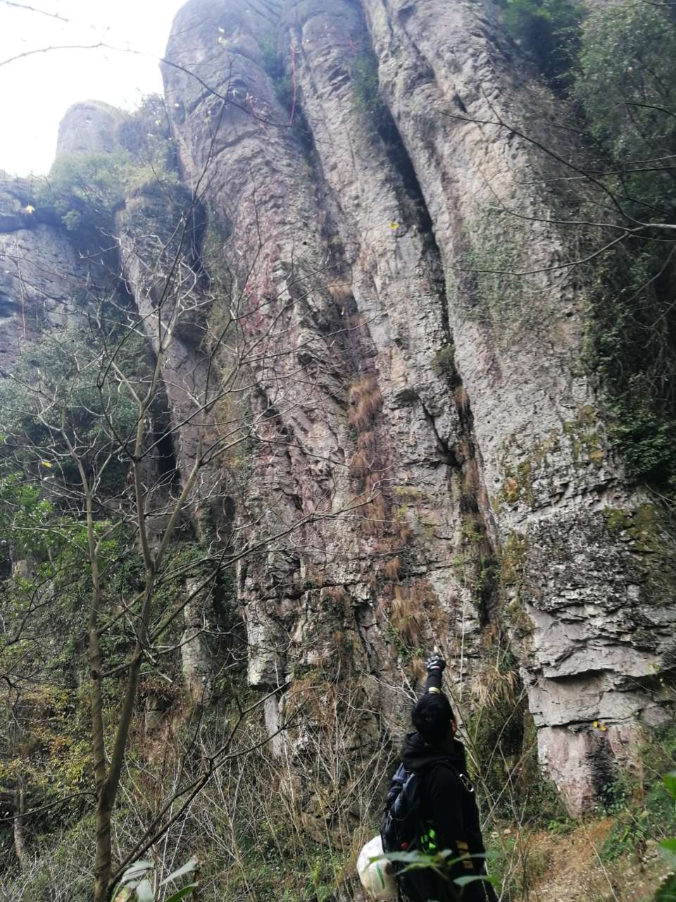 一线天,我们三个趴上面调戏下面花姑娘,一线天顶上的石头居然靠三块石头搭着,看起来特虚弱。我没敢爬上去,空空他们照样上去了