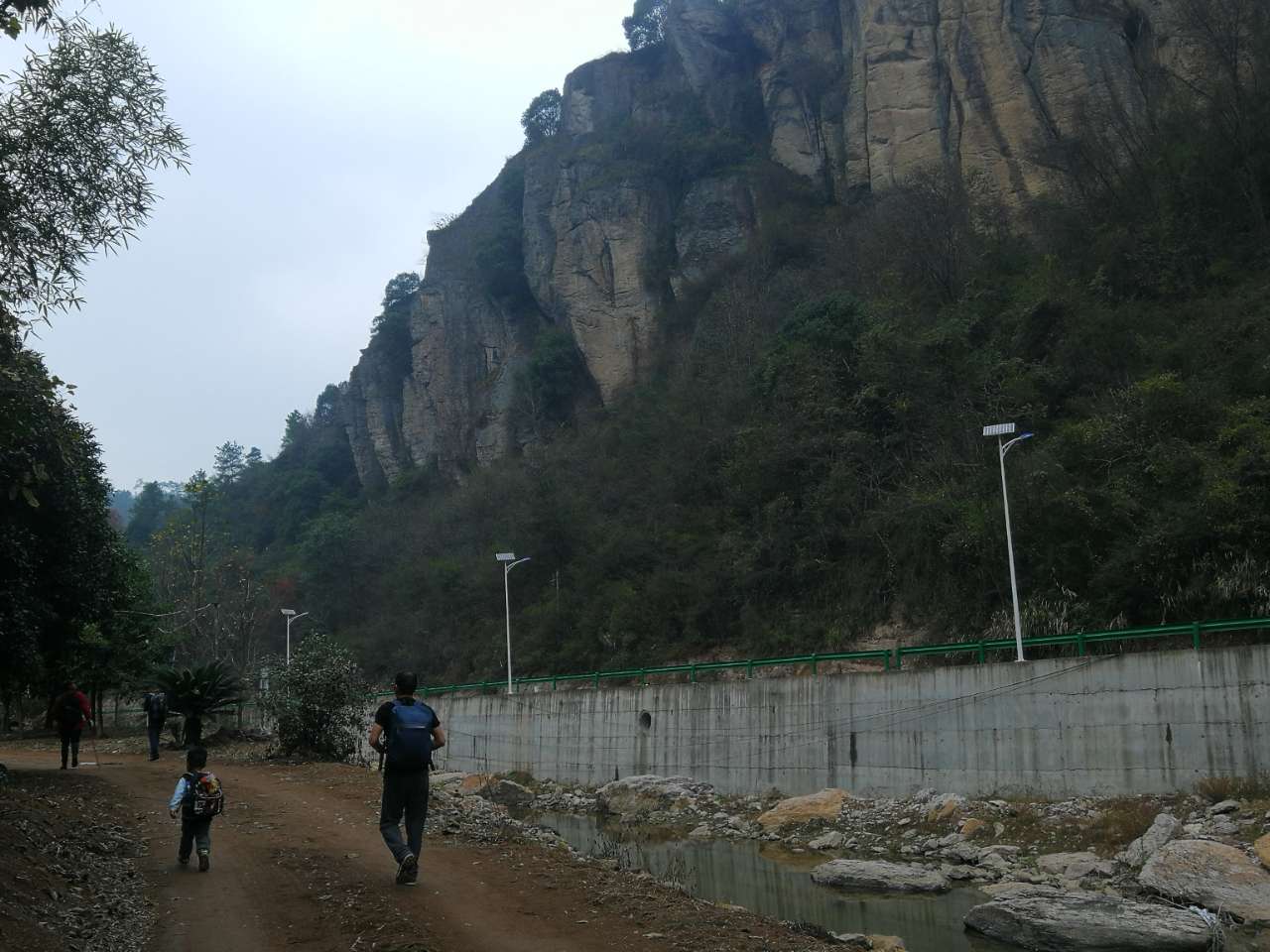 经过一个水库,百丈崖景区到了,玩岩降的人在玩刺激