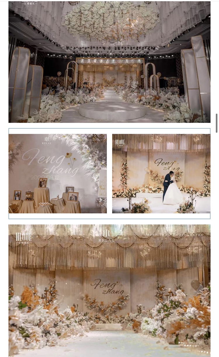 宴会厅整体是暖色调,喜欢香槟色的新人再增加一些香槟色的搭配再适合不过~